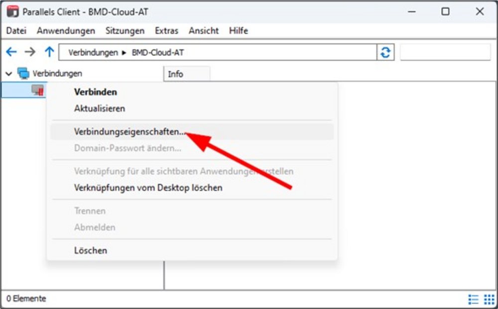 - Im Parallels Client (vormals 2X) müssen Sie in den Verbindungseigenschaften das neue Passwort hinterlegen.