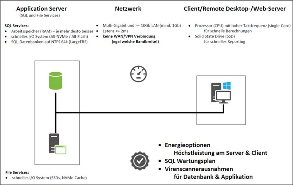 Empfehlung: Multi-Gigabit und >= 10-GbE-Verbindungen nutzen, Latenz <= 2 ms