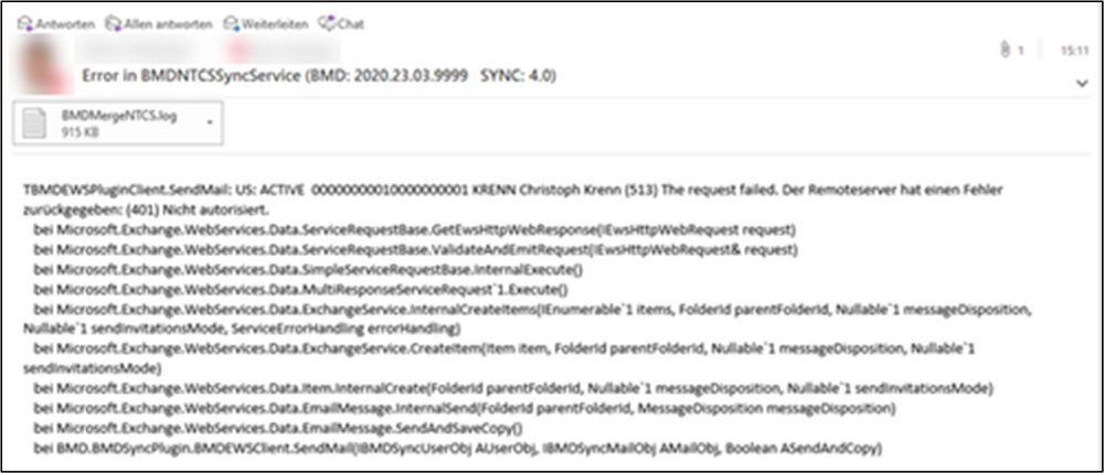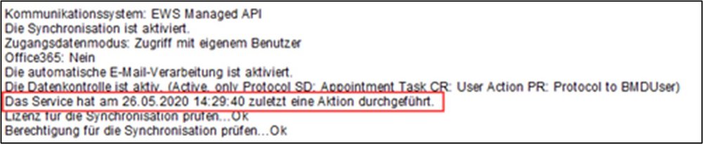 Beide Varianten – E-Mail bzw. automatische Korrektur – funktionieren nur, wenn der BMDNTCSSyncService läuft.