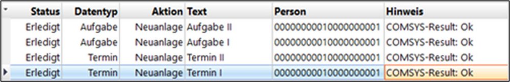 Sie können zwischen offenen bzw. bereits erledigten Synchronisationsdaten unterscheiden bzw. auch aufgrund des Datentyps erkennen, ob es sich um eine Aufgabe bzw. einen Termin handelt.