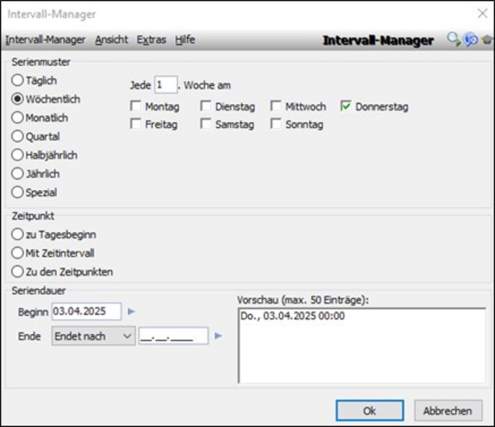 Die automatische Datenkontrolle prüft immer ausgehend vom Tag der Prüfung alle Termine bzw. Aufgaben, die eine Woche in der Vergangenheit und einen Monat in der Zukunft liegen.