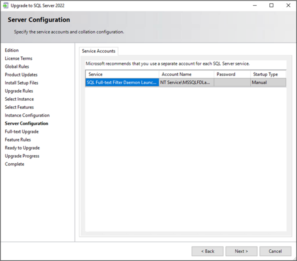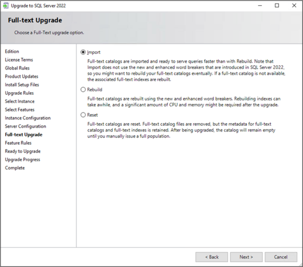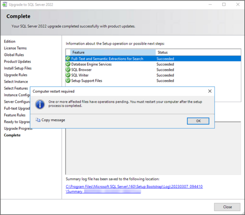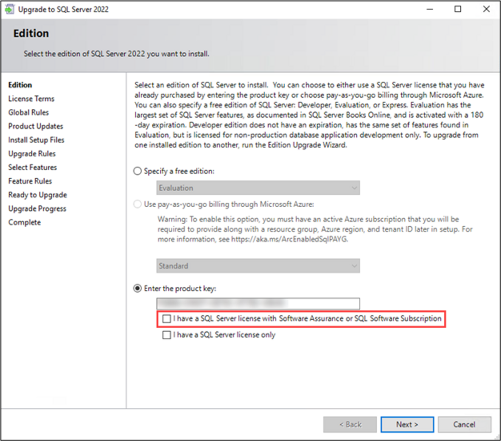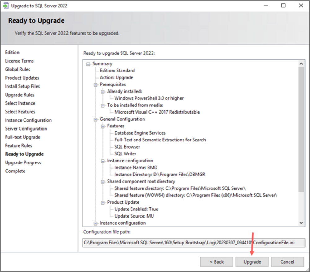 The following requirements must be met to upgrade to SQL 2022.