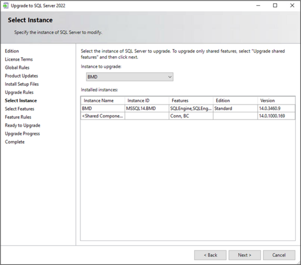 If one of these requirements is not met, you cannot upgrade the SQL Server.