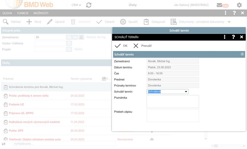 Nadriadenà môžu schvaľovaÅ¥ žiadosti o dovolenku priamo v softvéri alebo na cestách prostrednÃctvom mobilnej aplikácie BMD. Môže pritom ÃsÅ¥ o jednostupňový alebo viacstupňový proces spracovania. ZabezpeÄuje, aby sa žiadosÅ¥ o dovolenku doruÄila jednému alebo viacerým nadriadeným, prÃpadne tiež centrálnej osobe. Vedúci oddelenÃ, vedúci tÃmov alebo sekretariát môžu rýchlo a jednoducho schváliÅ¥ žiadosti o dovolenku a maÅ¥ vždy úplný prehľad o stavoch a zostatkoch dovolenky zamestnancov. VÄaka digitálnemu schvaľovaciemu procesu sa už žiadne žiadosti o dovolenku nestratia.